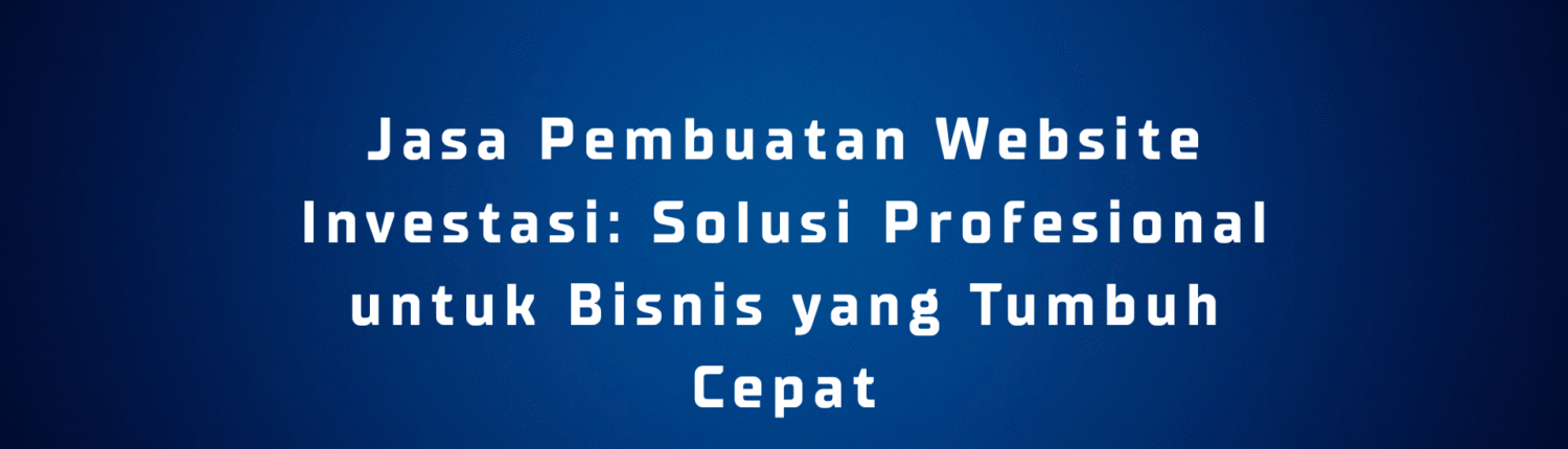 Jasa Pembuatan Website Investasi: Solusi Profesional untuk Bisnis yang Tumbuh Cepat
